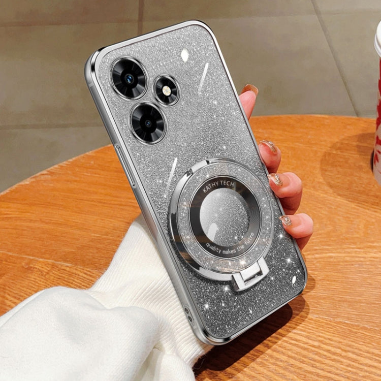 Funda TPU con Soporte Redondo y Purpurina Degradada para Infinix Hot 30 (Plateada)