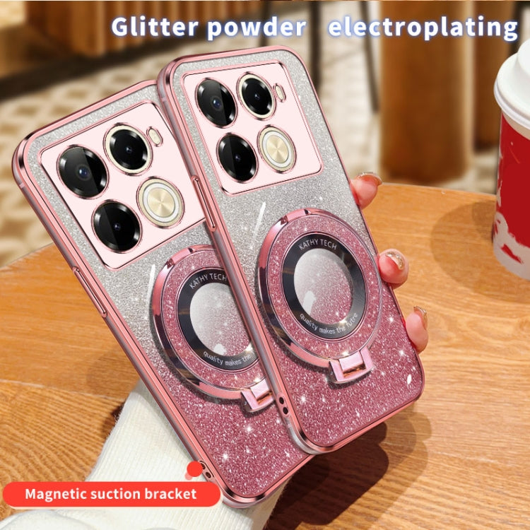 Funda TPU con Soporte Redondo y Purpurina Degradada para Infinix Note 40 Pro 5G (Plateada)