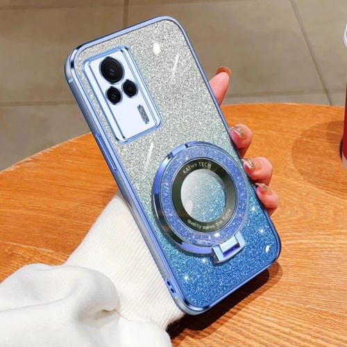 Funda de Teléfono de TPU con Soporte Redondo y Purpurina Degradada Plateada para Redmi K60E (Azul Sierra)