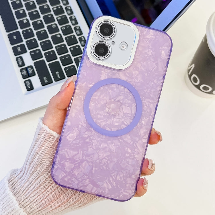 Funda de Teléfono TPU Magsafe iPhone 16 Textura Enchapada Película Lente (Violeta)