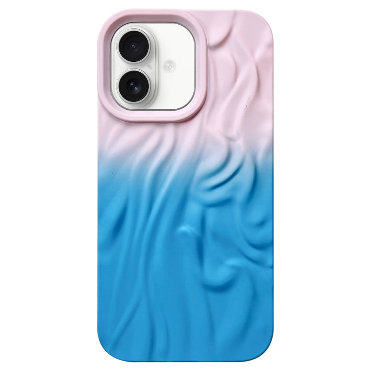 Funda TPU Esmerilada Textura de Piel Efecto Degradado Arrugas para iPhone 16 (Rosa Claro y Azul)