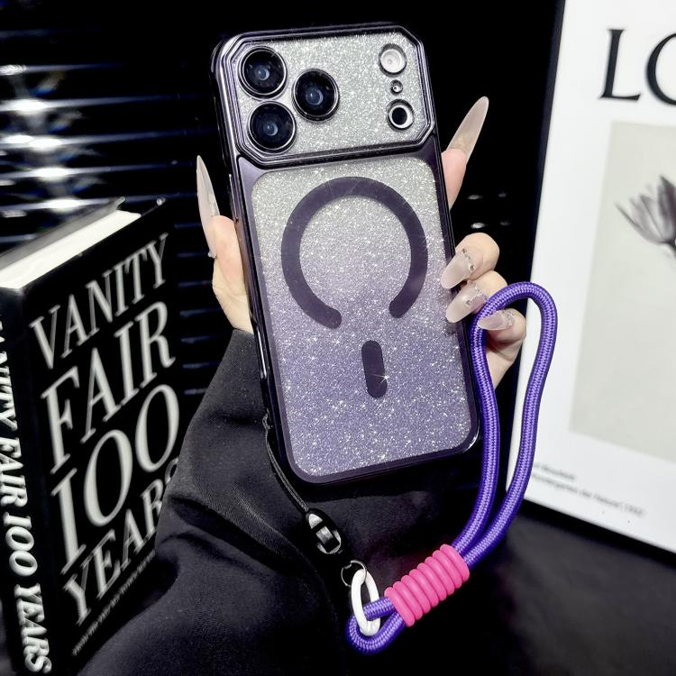 Funda de TPU MagSafe con ventana grande, brillo degradado, mate, galvanizada, con correa de mano para iPhone 17 Pro Max (morado)
