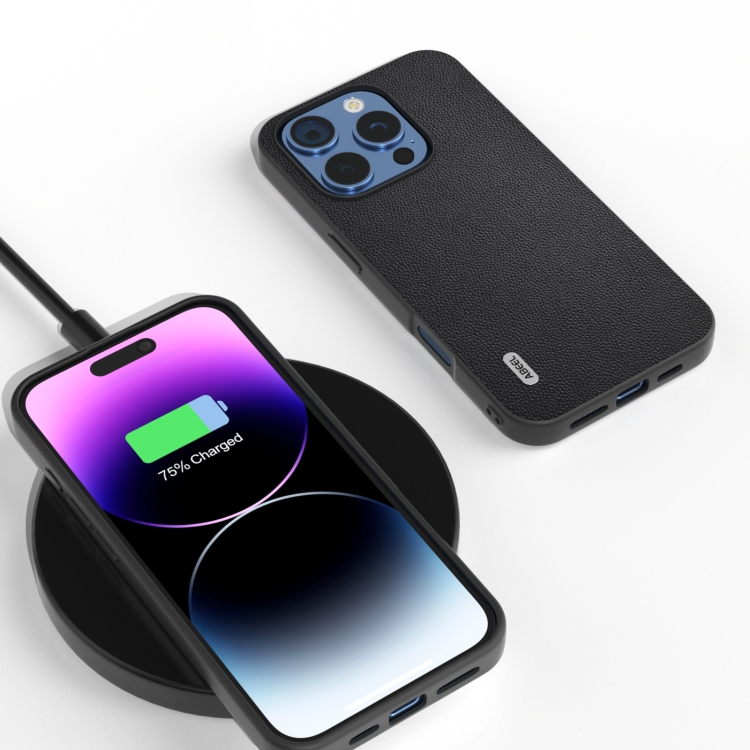 Funda de Cuero Genuino Abeel para iPhone 16 Pro Max con Marco Negro (Negro)