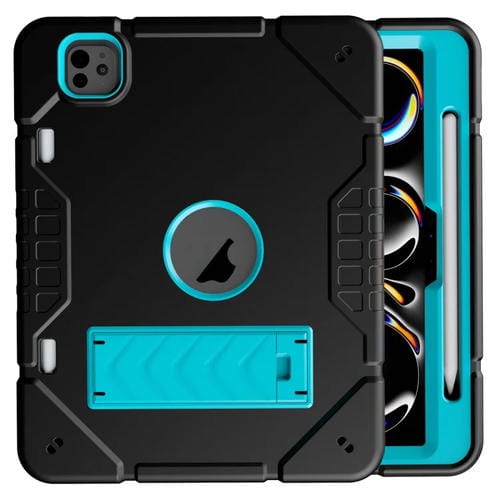 Funda híbrida de silicona para iPad Pro 11 (2024) con soporte de armadura (Negro y Azul)
