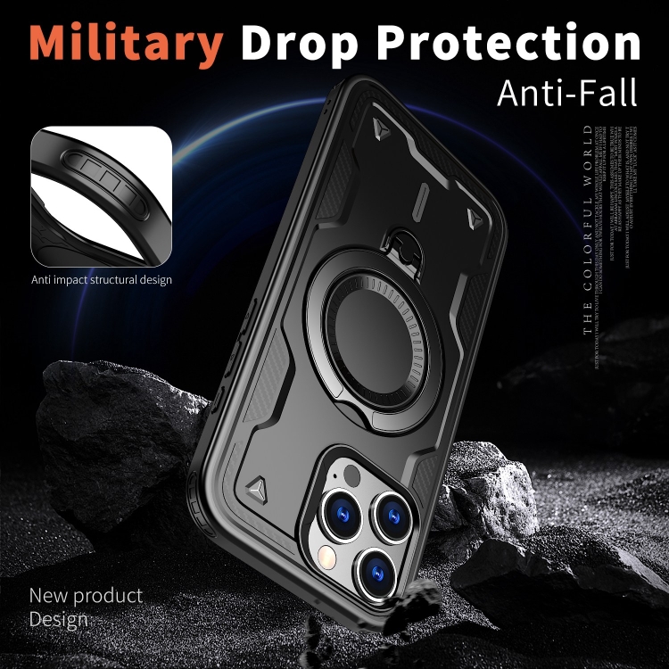 Funda Híbrida TPU iPhone 16 Pro Max Soporte Magsafe Carcasa Protectora (Negra)