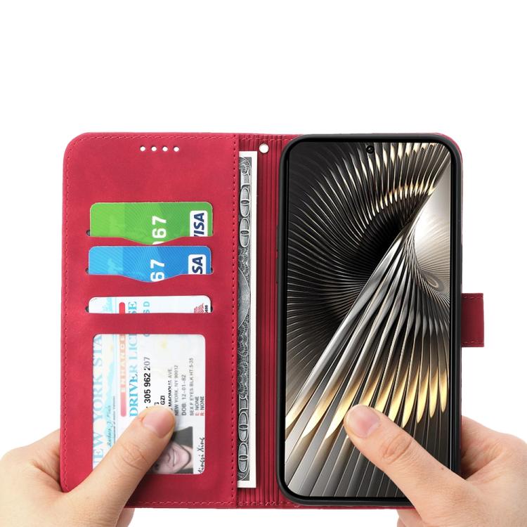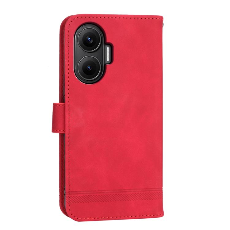 Funda híbrida de TPU y cuero sintético Dierfeng Dream Line para Redmi Turbo 4 Pro y Xiaomi Poco F7 (roja)