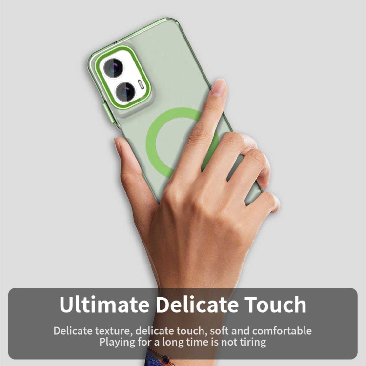 Funda híbrida TPU y PC Candy Magsafe para Motorola Moto G35 (Verde) con protección contra impactos