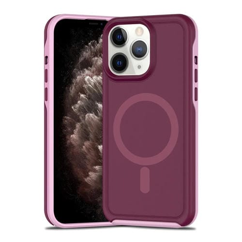 Funda híbrida TPU y PC con Protección Magsafe para iPhone 11 Pro Max (Rojo Vino y Rosa Claro)