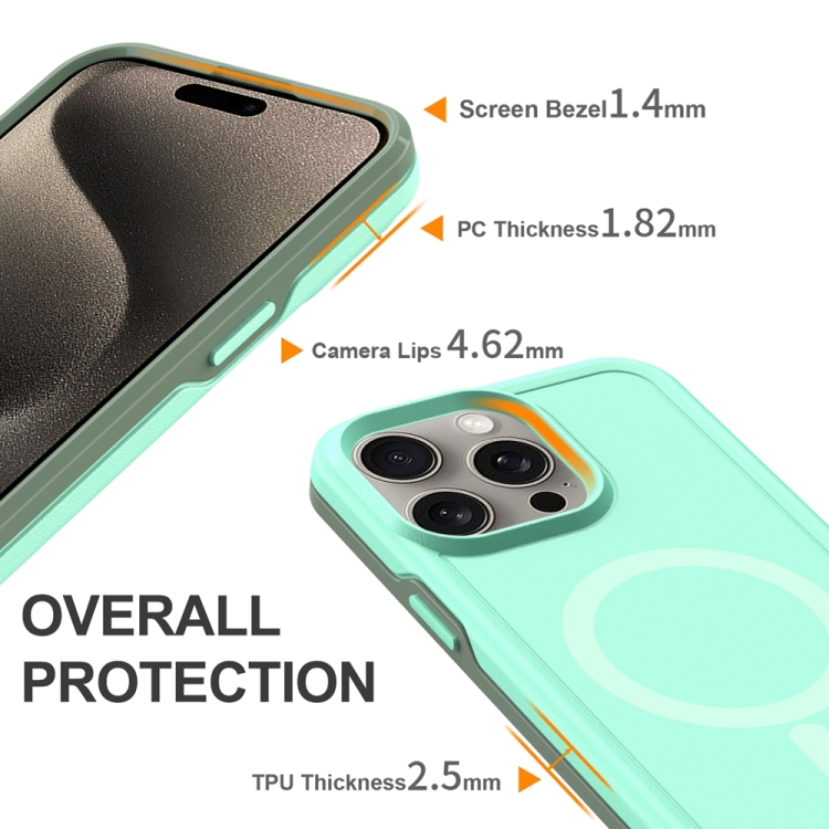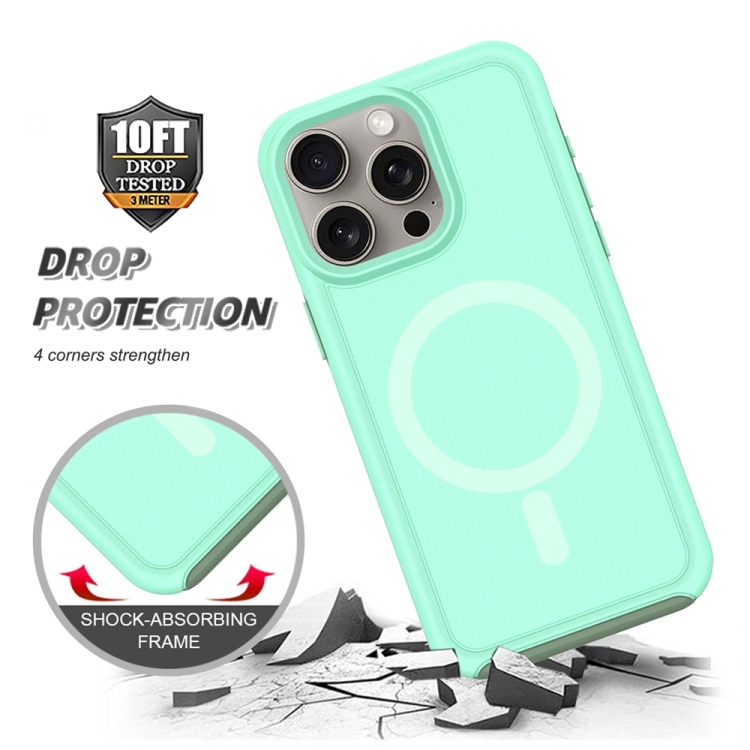 Funda híbrida TPU y PC para iPhone 13 Pro Max con Protección Magsafe a prueba de golpes (Verde Menta y Verde Grisáceo)