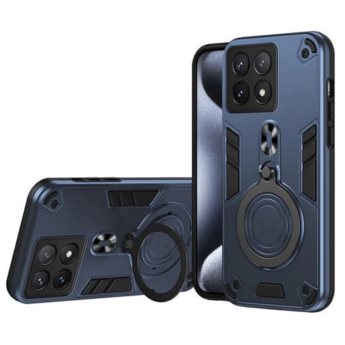 Funda Híbrida de TPU y PC con Soporte Giratorio de 360 Grados para Xiaomi Poco X6 Pro 5G (Azul Marino)
