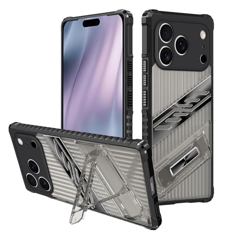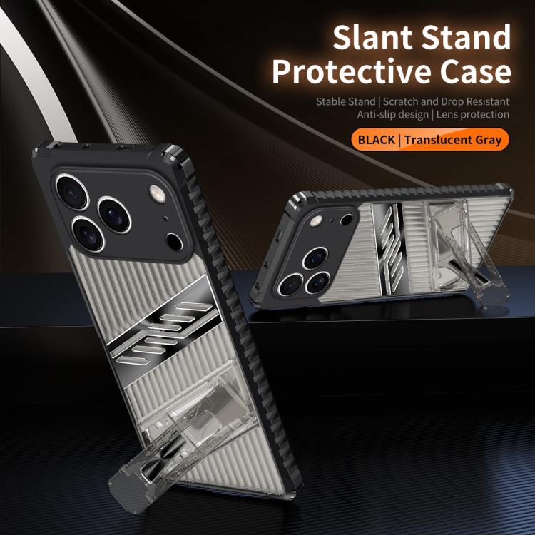 Funda híbrida de TPU y PC con soporte para iPhone 17 Pro Max (gris y negro)