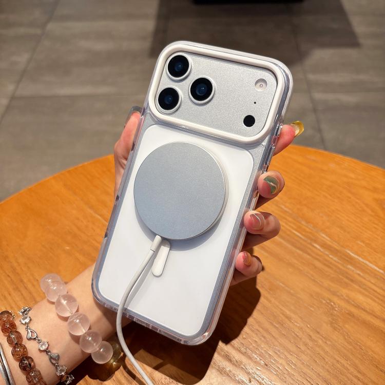 Funda híbrida de TPU y PC magnética MagSafe bicolor para iPhone 17 Pro Max (negra)