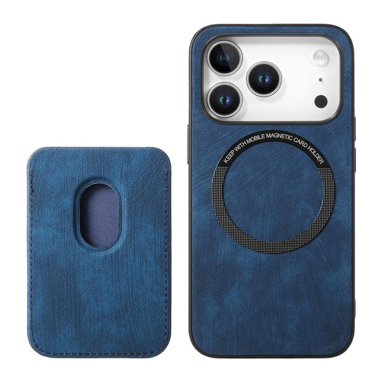 Funda magnética de cuero retro para iPhone 17 Pro (azul)