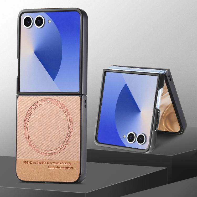 Funda magnética de piel de sarga para Samsung Galaxy Z Flip7 5G (rosa)