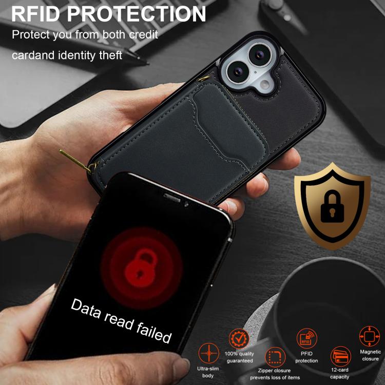 Funda magnética MagSafe para iPhone 17 LC.IMEEKE L6 Series con cremallera y tarjetero (negra)
