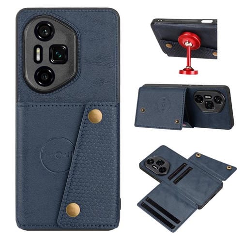 Funda Magnética para Honor 300 Ultra con Ranuras para Tarjetas y Doble Hebilla (Azul)