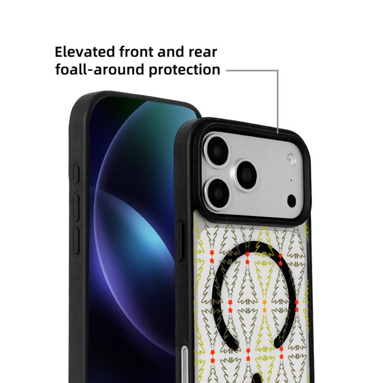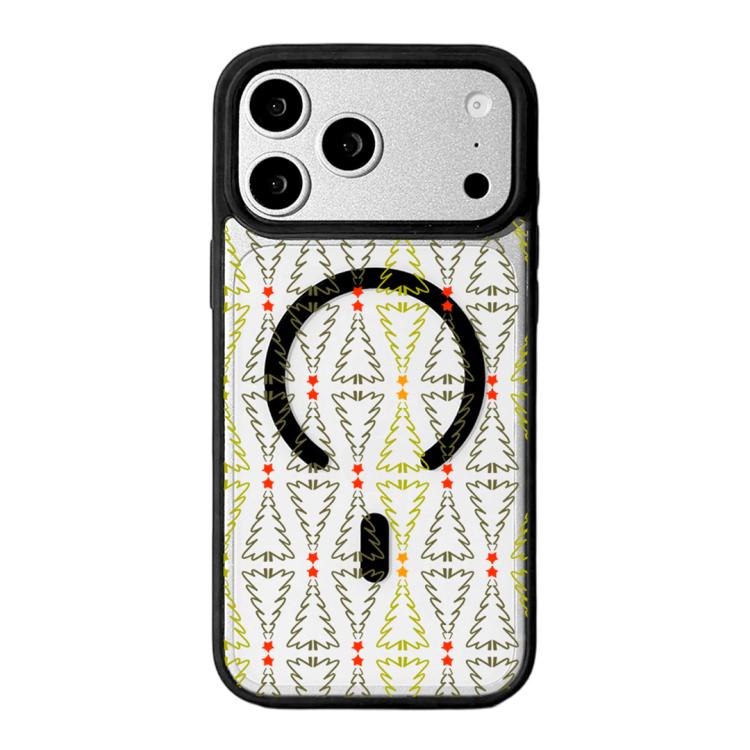 Funda magnética resistente con borde negro pintado para iPhone 17 Pro Max, serie navideña (árbol de Navidad adornado con estrellas).