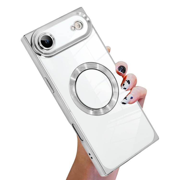 Funda MagSafe de TPU con patrón de CD electrochapado cuadrado y ángulo recto para iPhone Air (plateada)