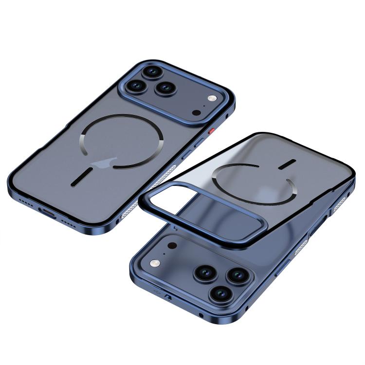 Funda MagSafe esmerilada con marco metálico y cierre a presión para iPhone 17 Pro (Azul titanio)