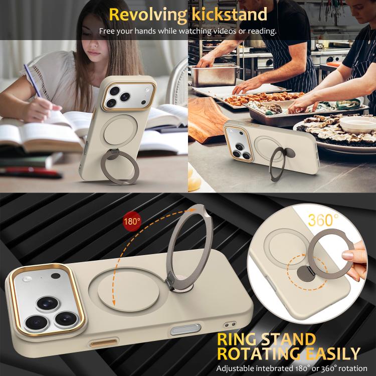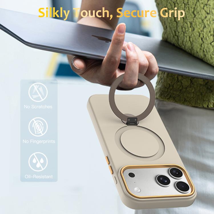 Funda MagSafe híbrida TPU PC con soporte de anillo pivotante para iPhone 17 Pro Max Gen1.5 (albaricoque)