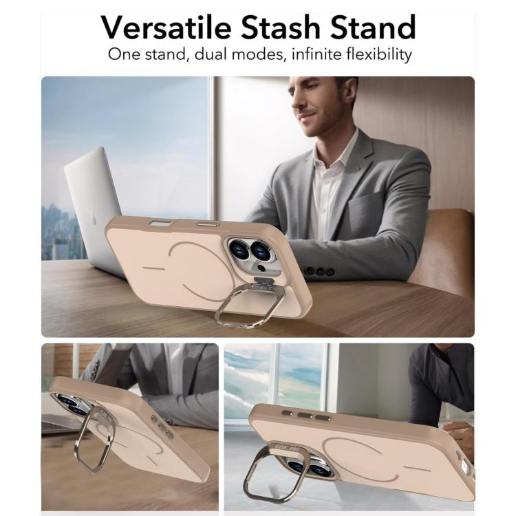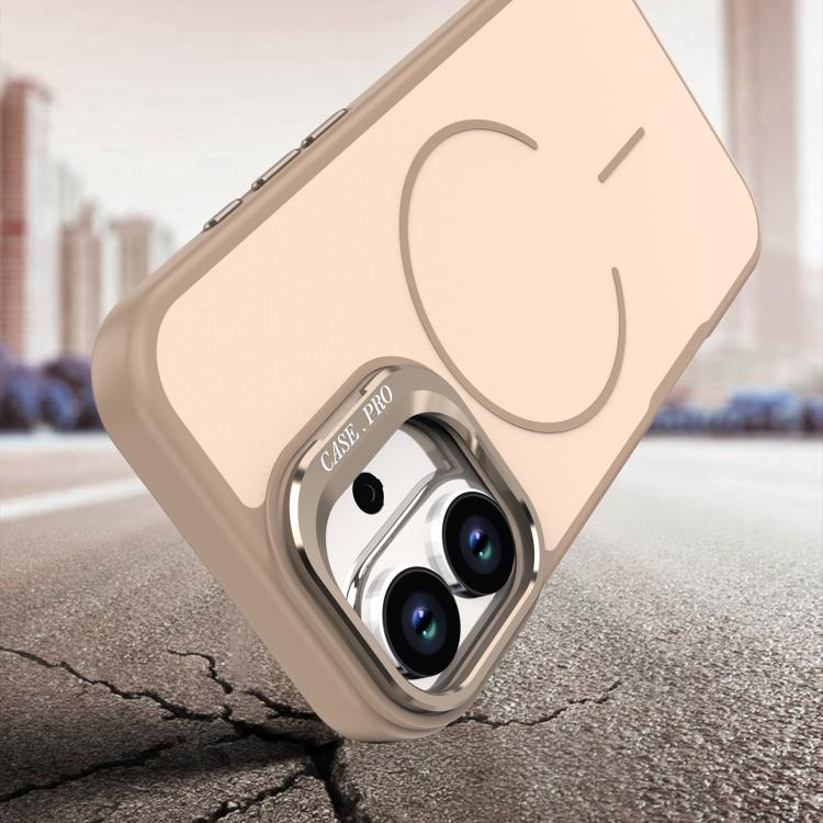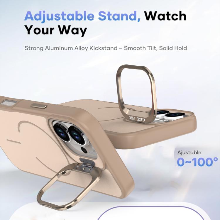 Funda Magsafe para iPhone 17 con soporte para cámara y tacto suave en contraste de colores brillantes (dorado desierto)