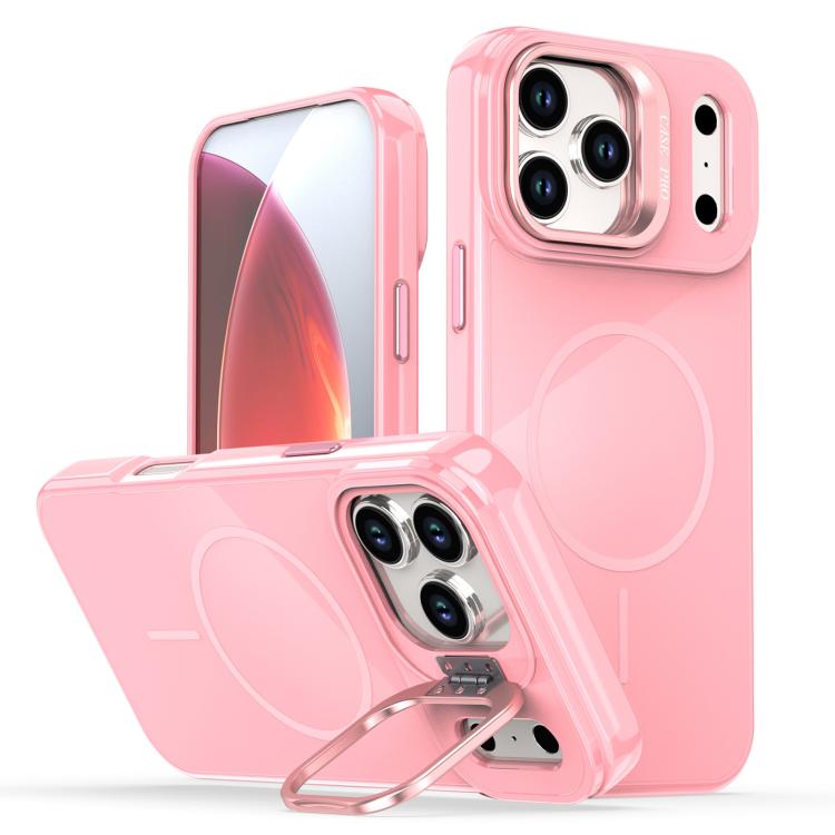 Funda Magsafe para iPhone 17 Pro Max con soporte de cámara de imitación de colores brillantes (rosa)