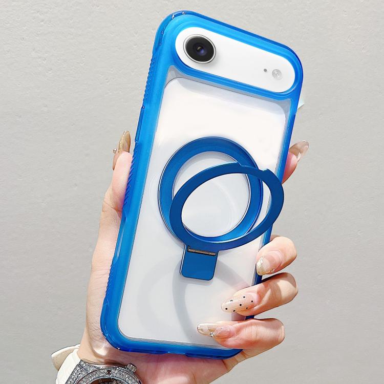 Funda MagSafe para iPhone Air con borde translúcido y soporte metálico (azul oscuro)