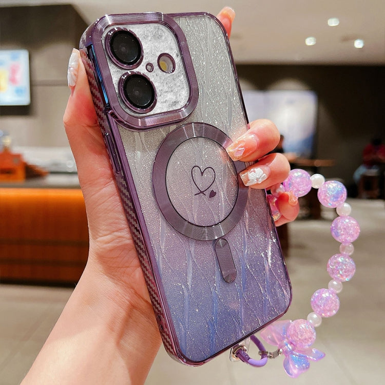 Funda para iPhone 16 TPU con Purpurina Degradada Hojas de Amor Fibra de Carbono Magsafe (Morado)
