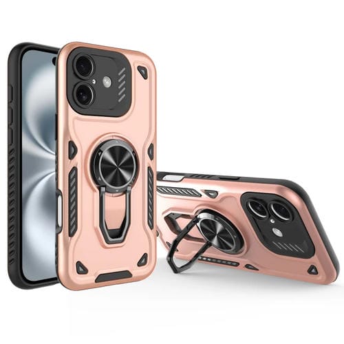 Funda para iPhone 16 Plus Soporte Giratorio Metal Carcasa Magnética TPU PC (Dorada)