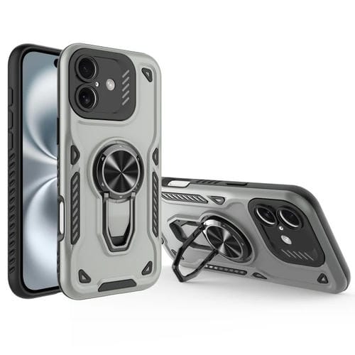 Funda para iPhone 16 Plus con Soporte Giratorio de Metal y Carcasa Magnética TPU y PC (Gris)