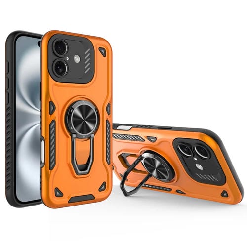 Funda para iPhone 16 Plus Soporte Giratorio Metal Carcasa Magnética TPU PC (Naranja)
