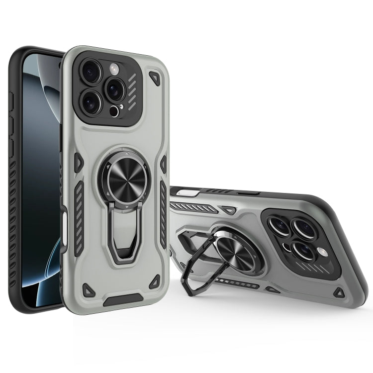 Funda para iPhone 16 Pro Max con Soporte Giratorio de Metal y Carcasa Magnética de TPU y PC (Gris)