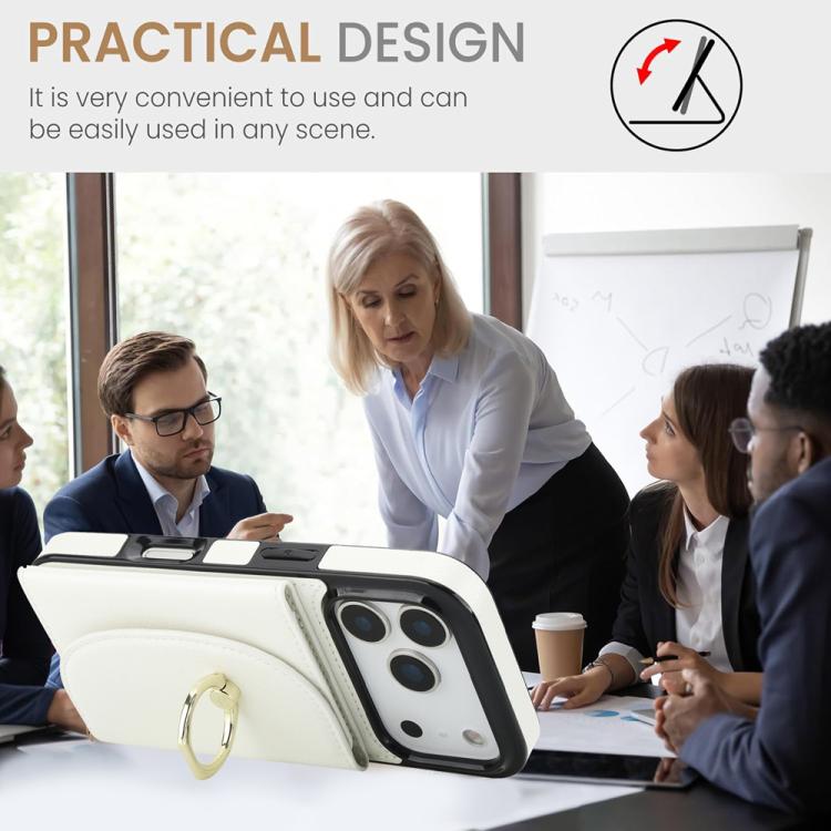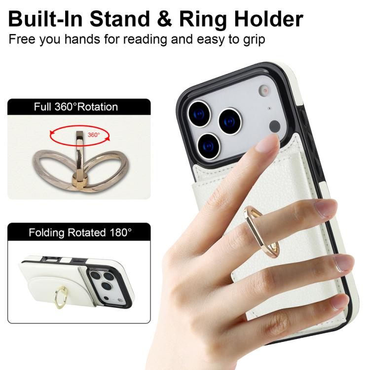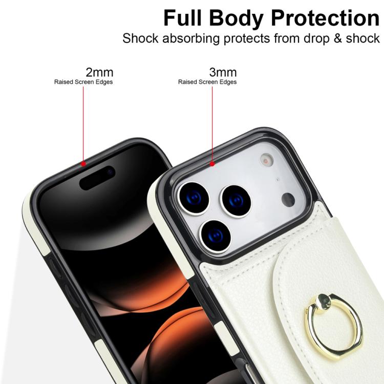 Funda para iPhone 17 Pro con tarjetero y anillo, tacto suave (blanca)