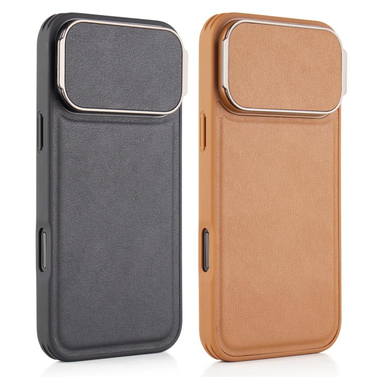 Funda para iPhone 17 Pro Max con diseño de piel de cordero y soporte para lente cuadrado (marrón)