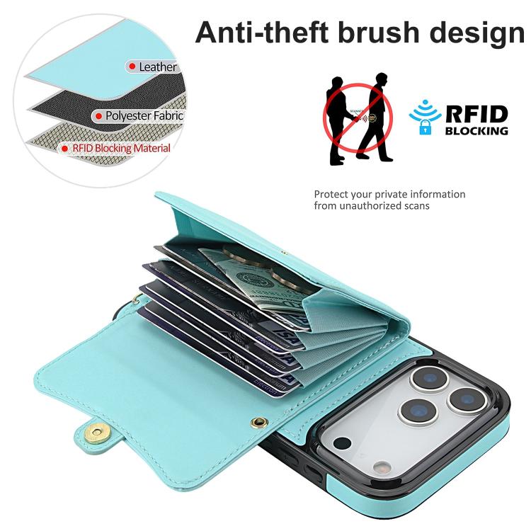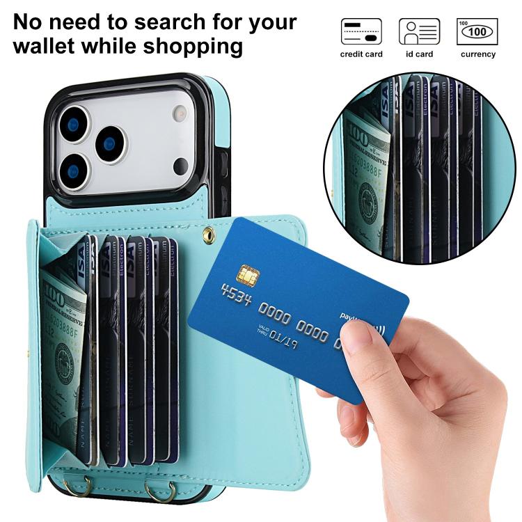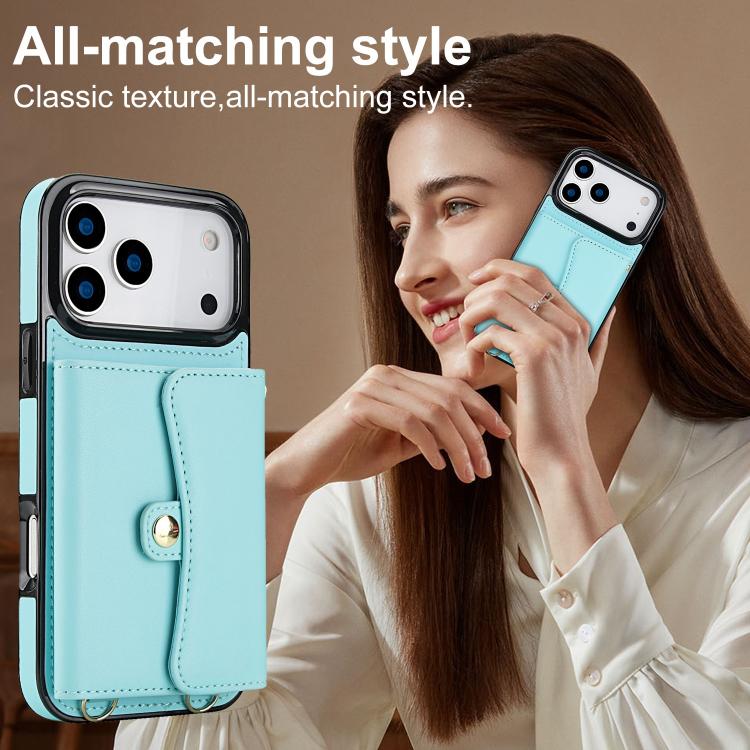 Funda para iPhone 17 Pro Max con ranura para tarjeta RFID y cordón largo (verde menta)