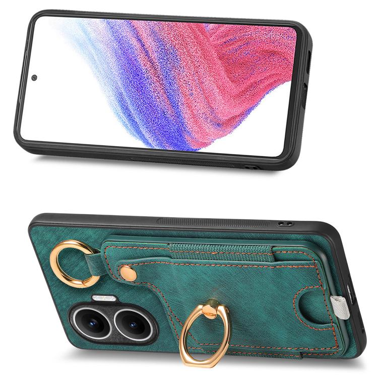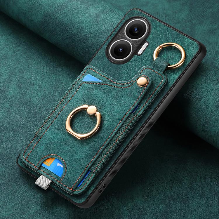 Funda para Redmi Turbo 4 Pro con diseño retro de piel sintética y anillo para tarjetas, con asa para colgar (verde)