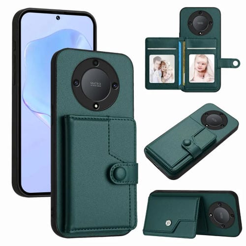 Funda para Teléfono Antirrobo con Botón y Tarjetero RFID para Honor X9A/Magic5 Lite (Verde)