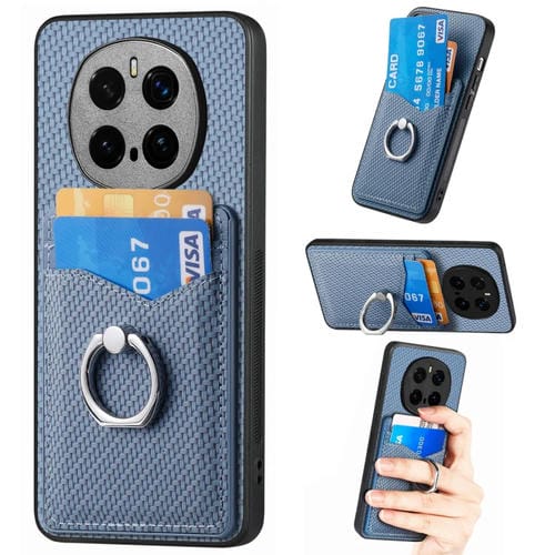 Funda para Teléfono Honor Magic7 Pro con Anillo y Billetera de Fibra de Carbono (Azul)