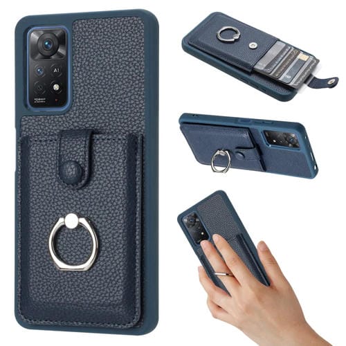 Funda para Teléfono con Anillo y Diseño de Textura de Lichi para Redmi Note 11 Pro 4G (Azul)