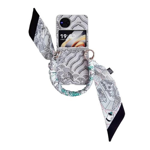 Funda para Teléfono con Cobertura Total con Bordado de Nubes Propicias para Vivo X Flip con Bufanda/Pulsera (Gris)