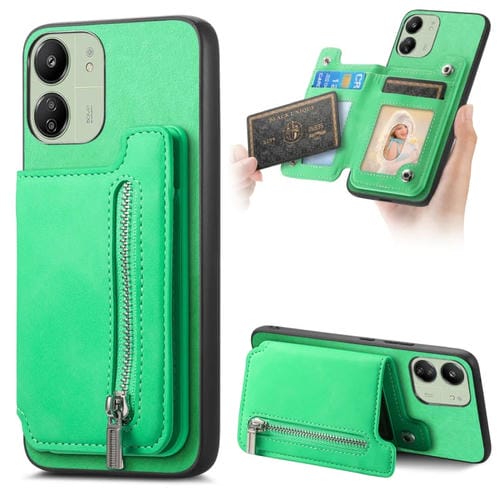 Funda para Teléfono con Cremallera Magsafe Retro para Redmi 13C / Poco C65 / M6 (Verde)