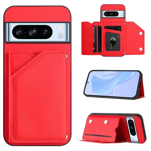 Funda para Teléfono Google Pixel 8 Pro Skin Feel con 4 Ranuras para Tarjetas y Correa (Rojo)