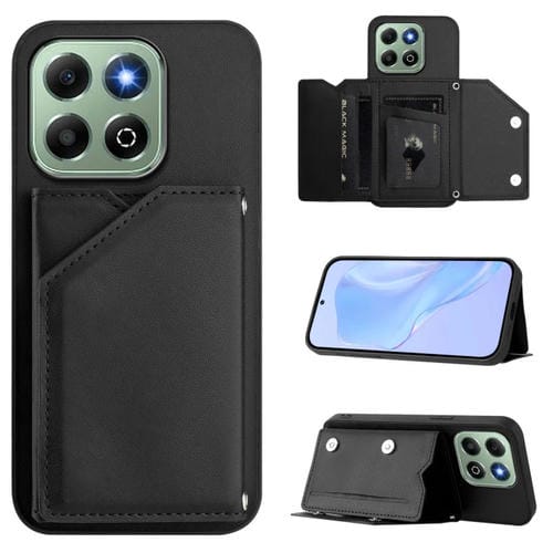 Funda para Teléfono Honor X6B Skin Feel con 4 Ranuras para Tarjetas y Correa (Negra)