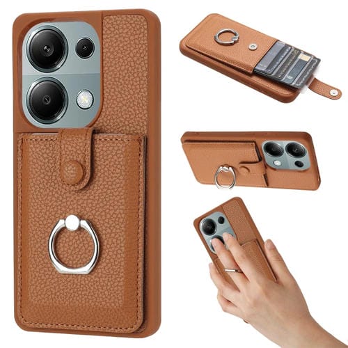 Funda para Teléfono con Diseño de Textura de Lichi para Redmi Note 13 Pro 4G, con Soporte para Anillo y Diseño de Tarjeta (Marrón)