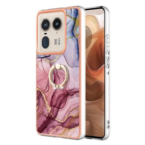 Funda para Motorola Edge 50 Ultra con IMD Doble Cara, Galvanoplastia Mármol y Anillo (Rojo Rosa)