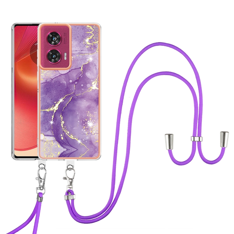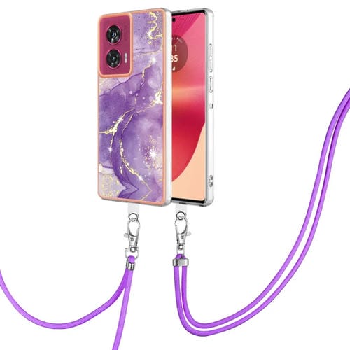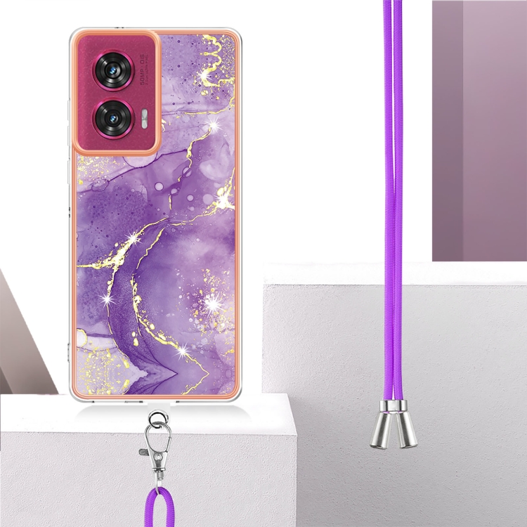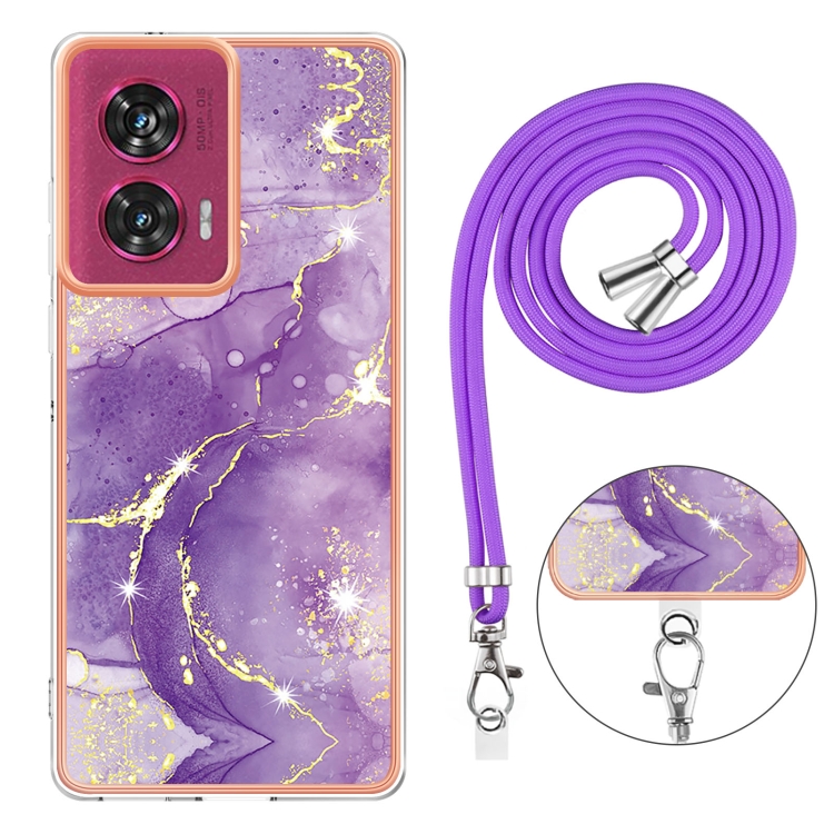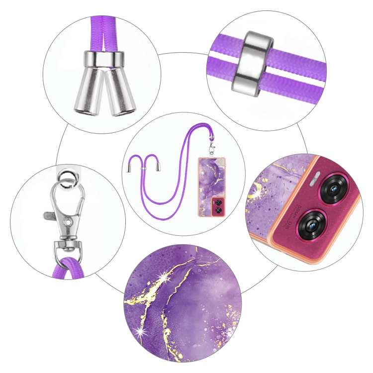 Funda para Teléfono Motorola Edge 50 Fusion con Imd Doble Cara Galvanoplastia Mármol y Cordón (Morado)