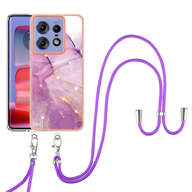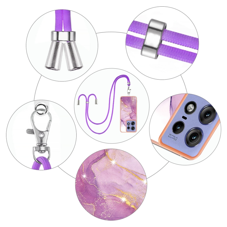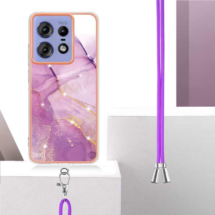 Funda Teléfono Motorola Edge 50 Pro con IMD Doble Cara Revestimiento Mármol Galvanizado y Cordón (Morado)