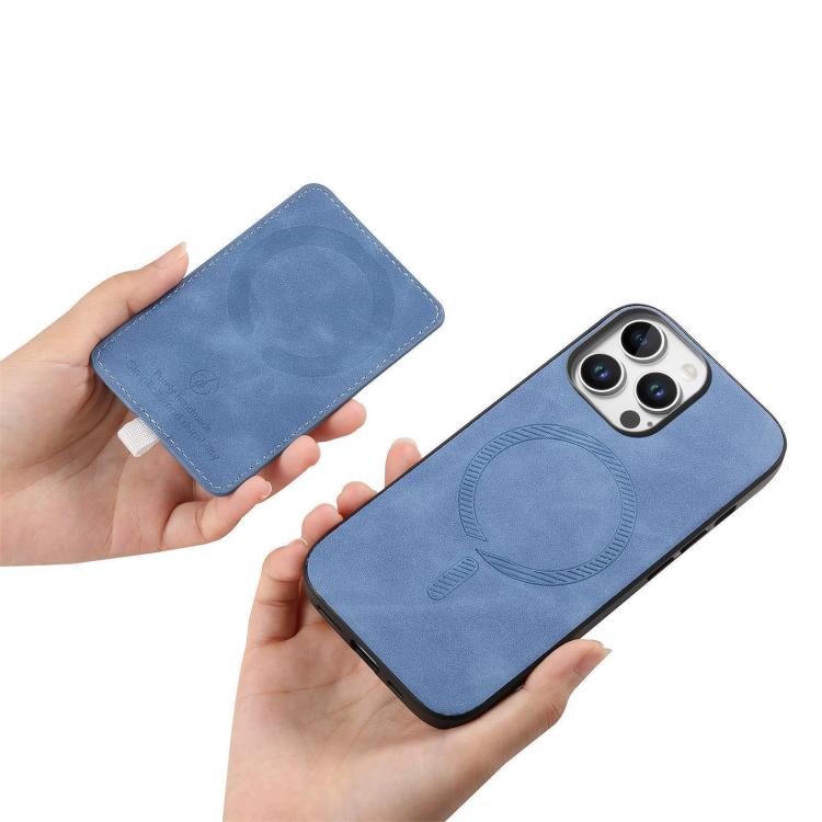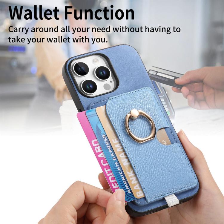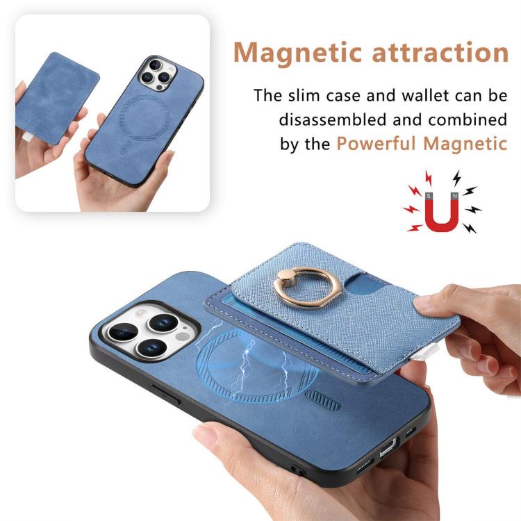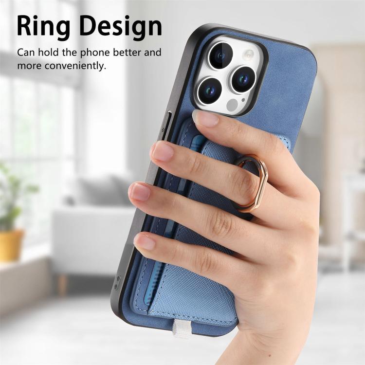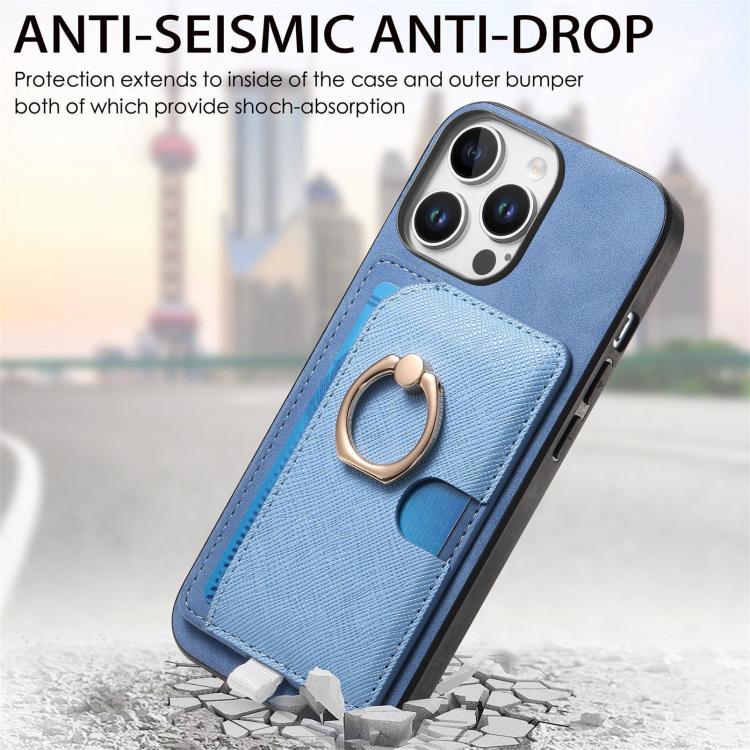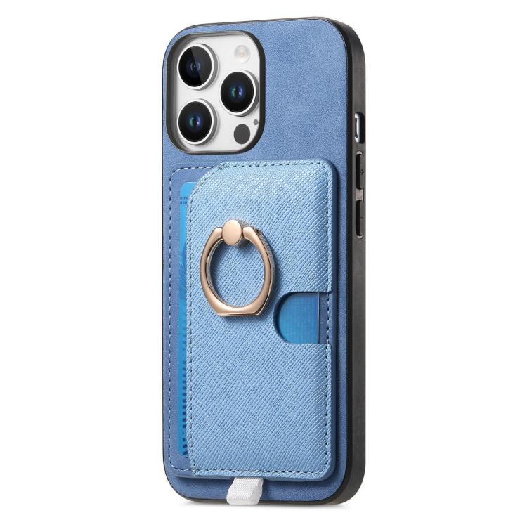 Funda para Teléfono iPhone 13 Pro Max Ranuras Tarjetas Anillo Cuero Retro (Azul)