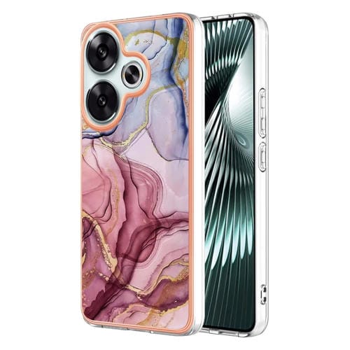 Funda para Teléfono con Revestimiento de Mármol Galvanizado de Doble Cara Imd para Xiaomi Poco F6 5G (Rosa Rojo 014)