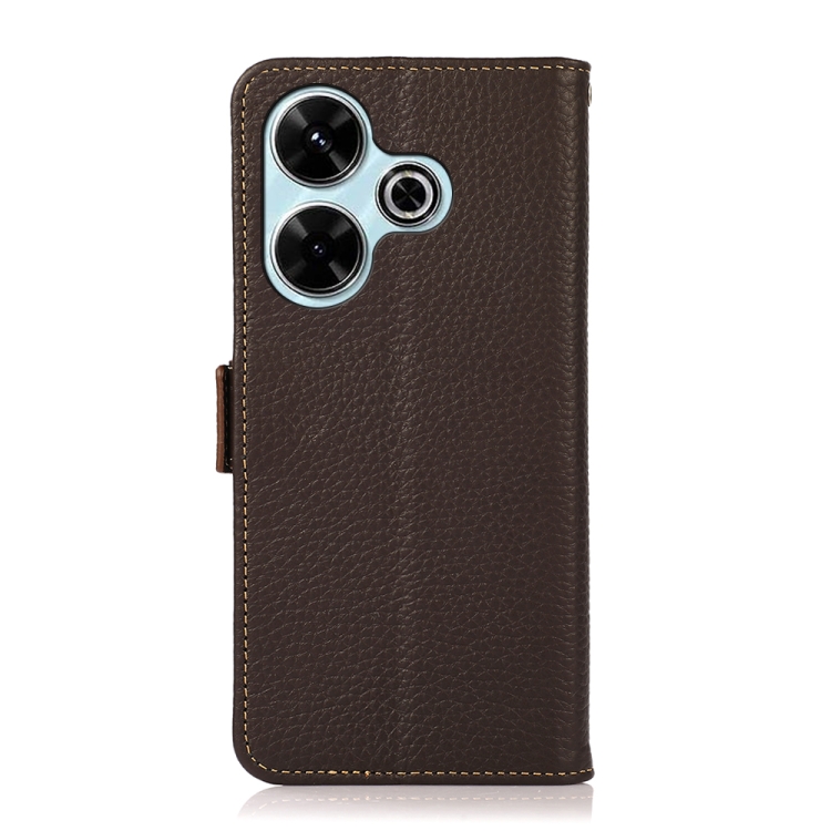 Funda para Teléfono con Rfid de Cuero Genuino con Imán Lateral Khazneh para Redmi 13 4G (Marrón)